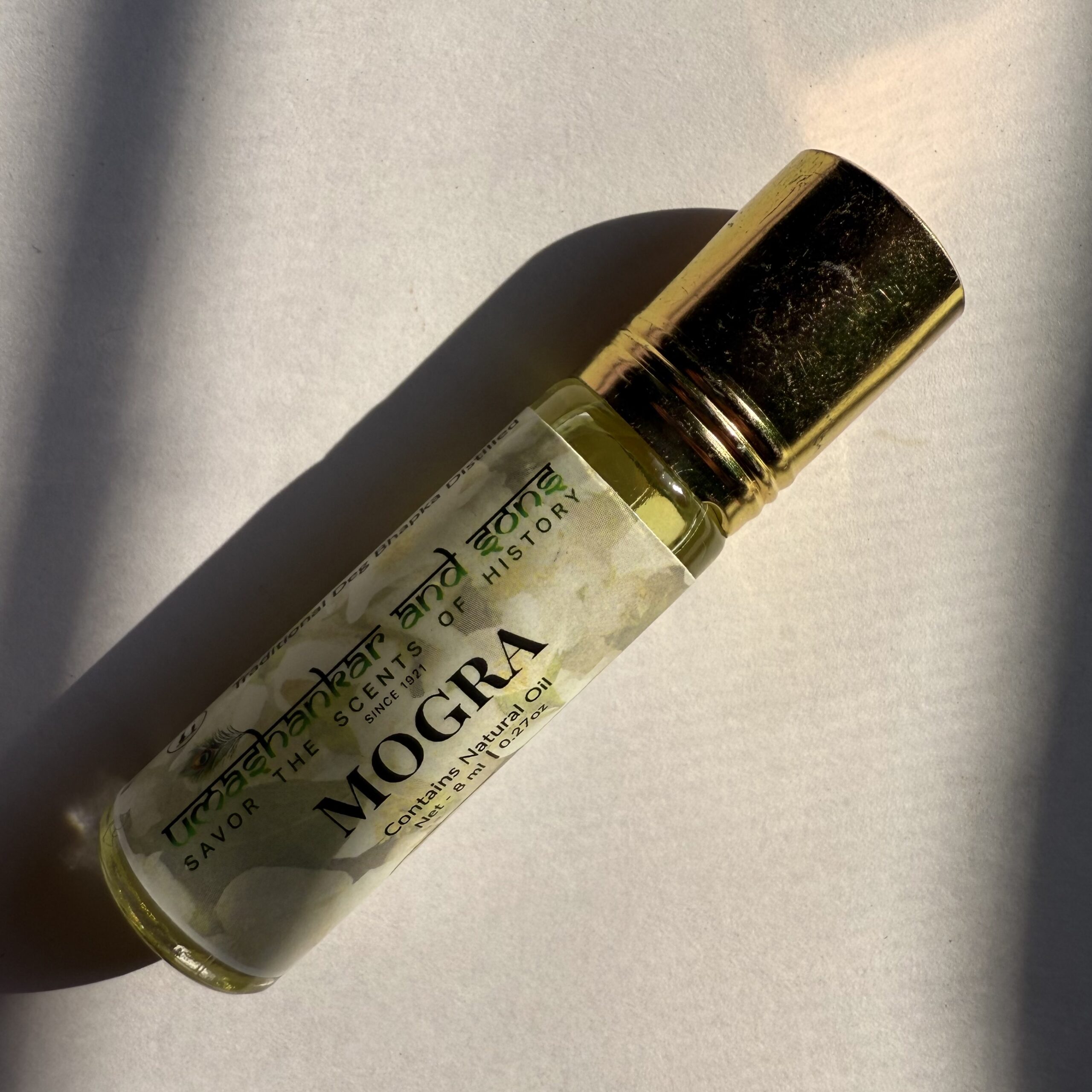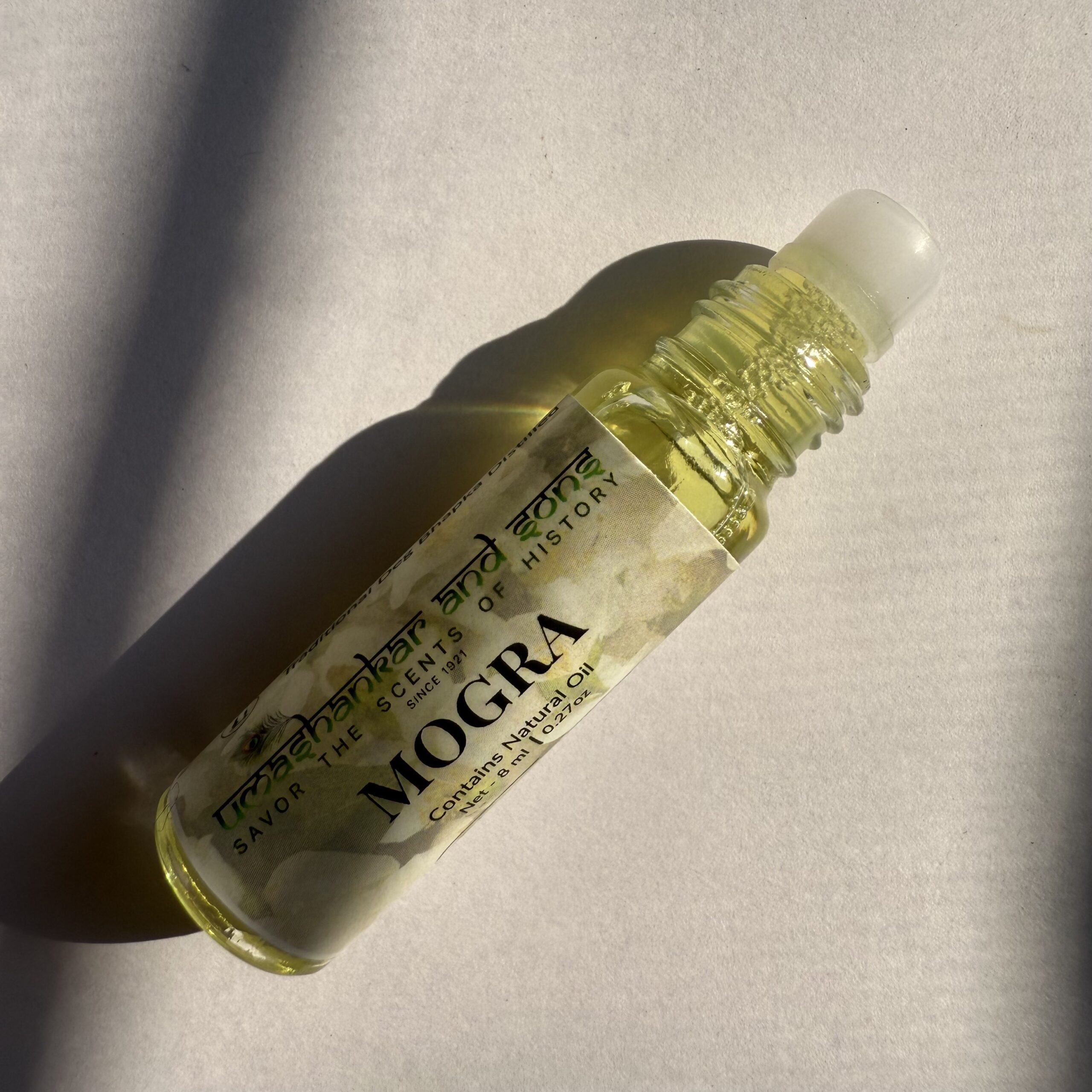 Pure Mogra Attar, traditionally distilled in Vrindavan—alcohol-free, long-lasting, and perfect for pooja, meditation, and daily wear