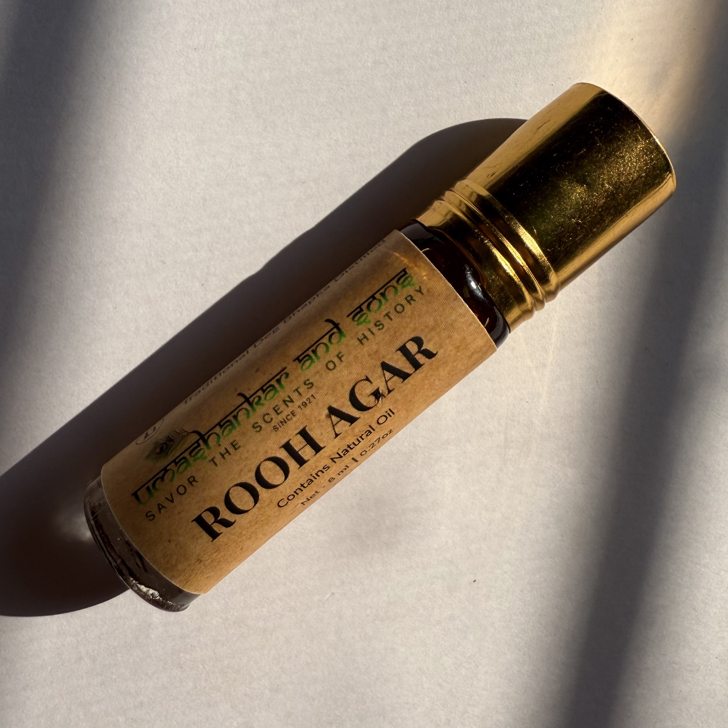 Pure Rooh Agar Attar, traditionally distilled in Vrindavan—alcohol-free, long-lasting, and perfect for pooja, meditation, and daily wear