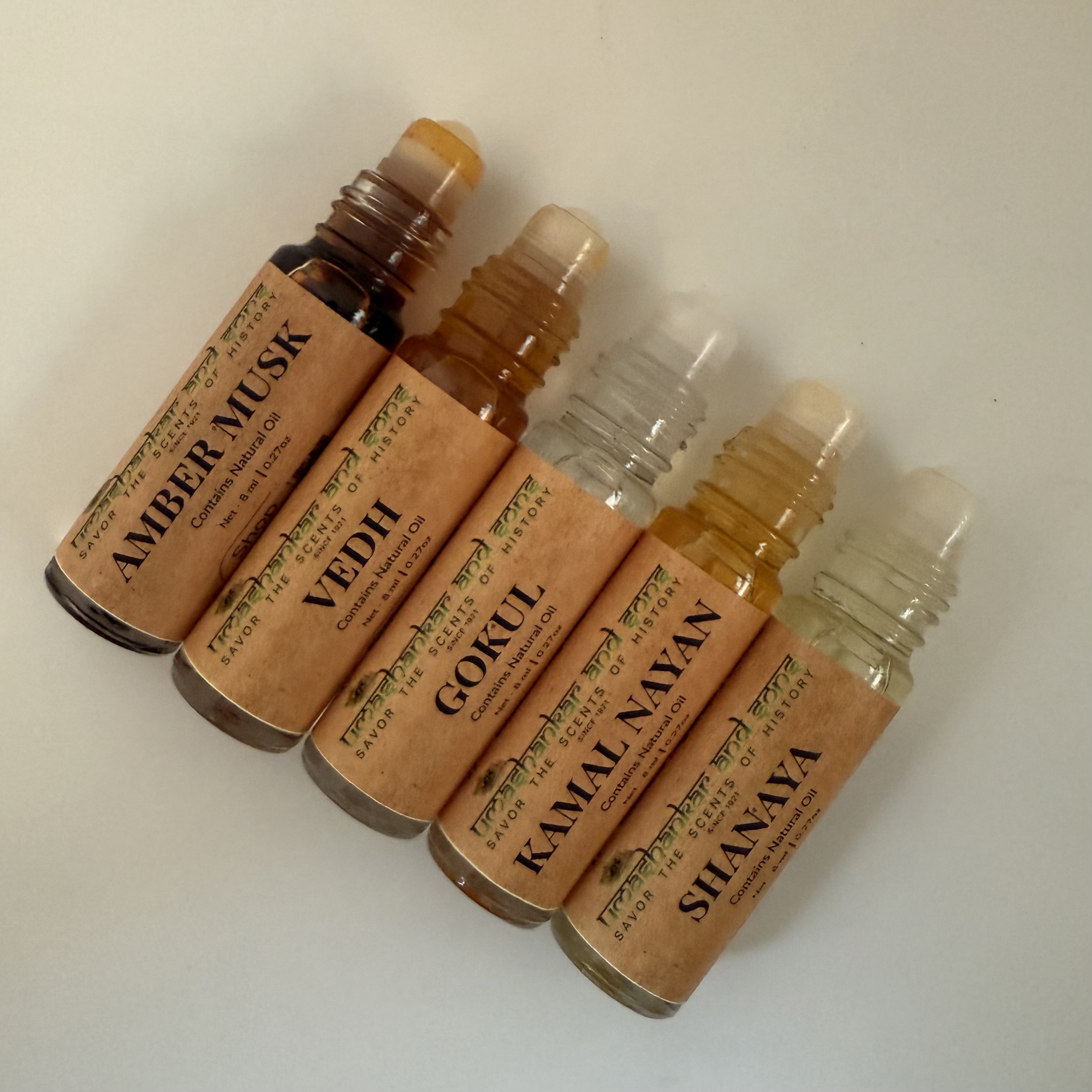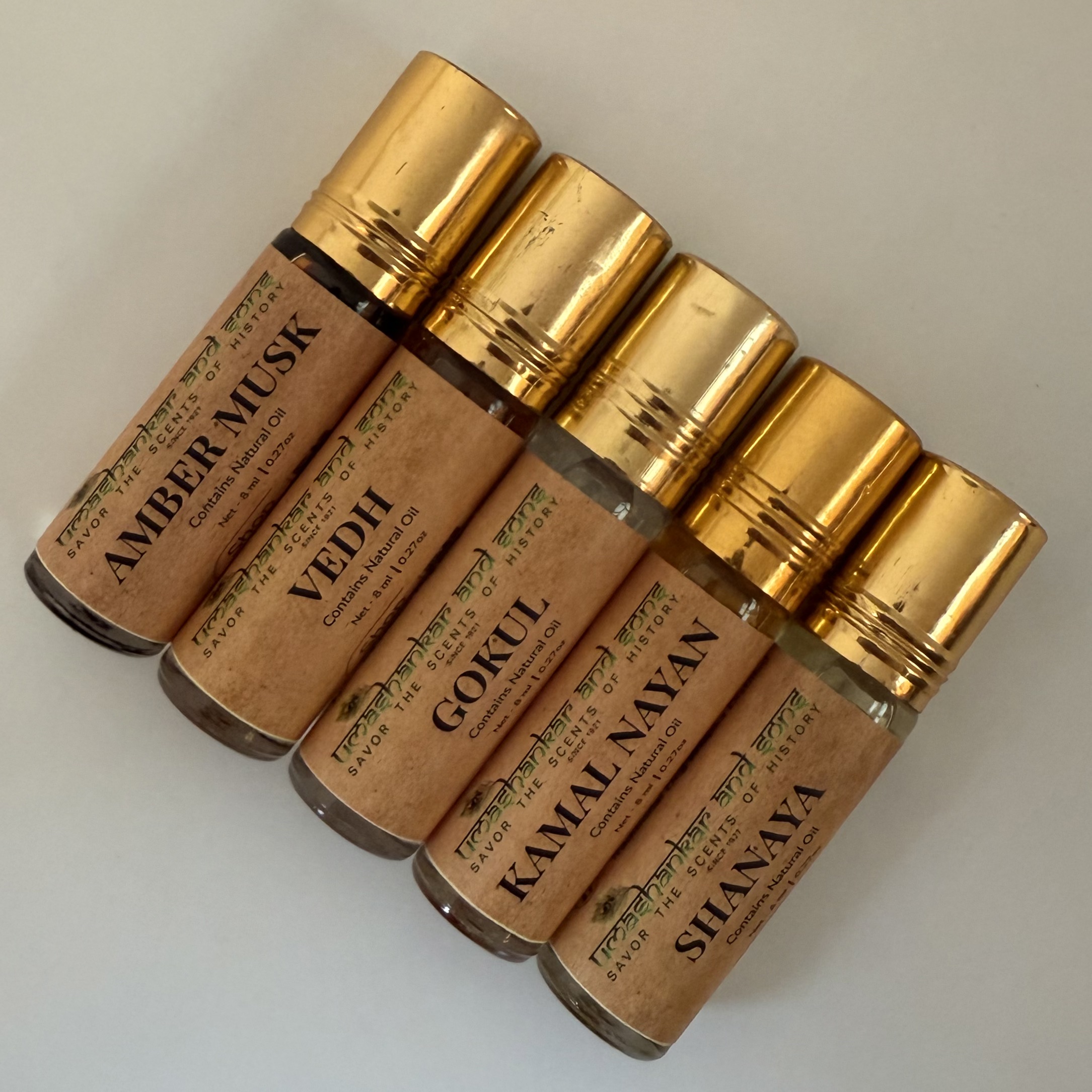 Amber Musk, Vedh, Gokul, Kamal Nayan, Shanaya Attar, traditionally distilled in Vrindavan—alcohol-free, long-lasting, and perfect for pooja, meditation, and daily wear