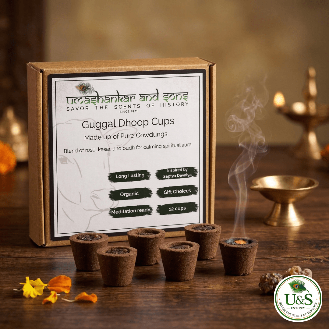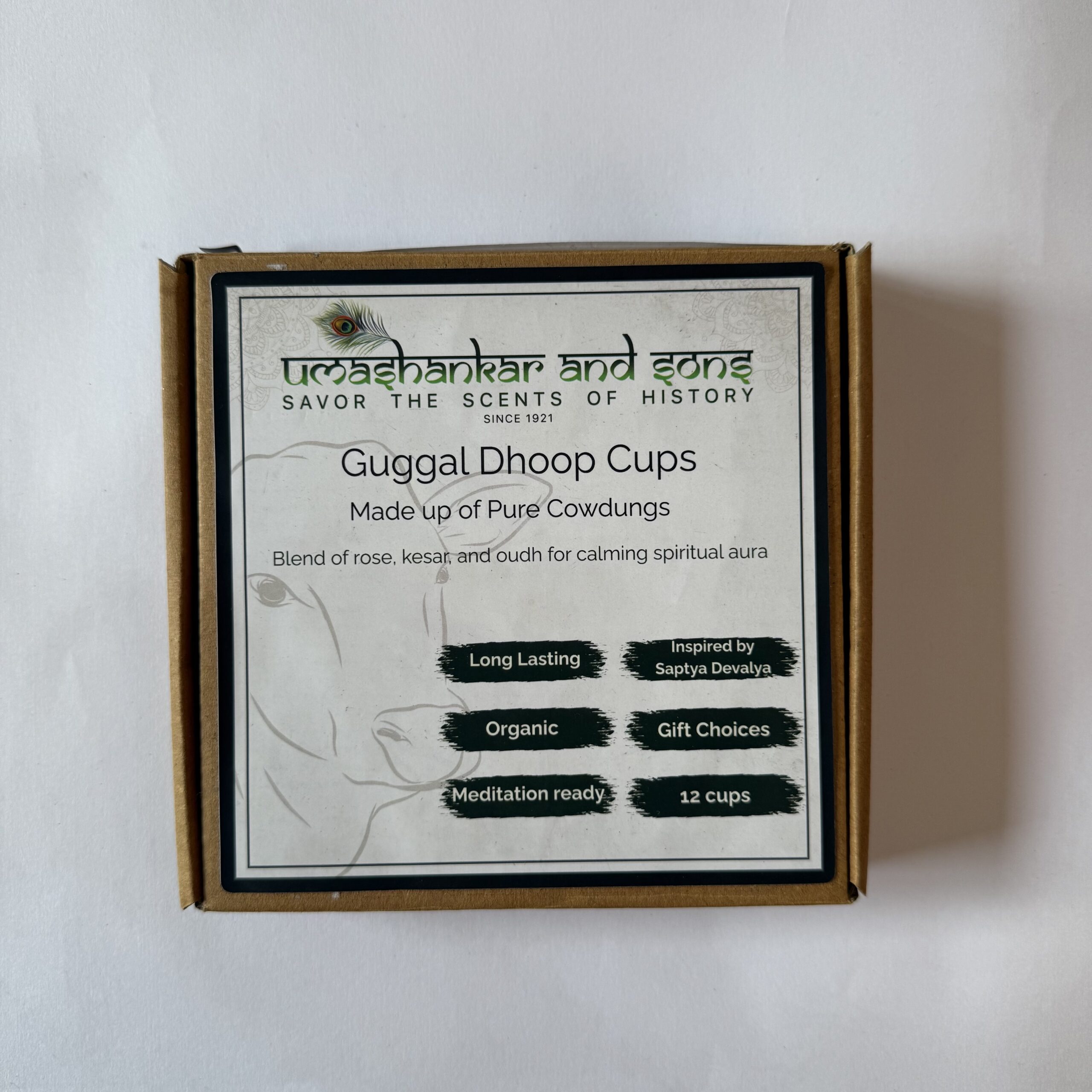 Guggal Cups – Inspired by Vrindavan’s Sapta Devalaya Temples | 100% Cow Dung-Based | Natural, Devotional & Allergy-Free | 1 Box of 12 Guggul Cups