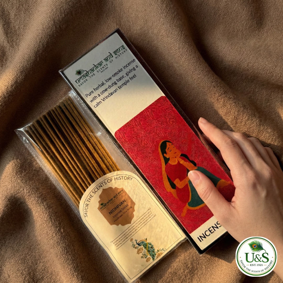 Nidhivan Incense Sticks, handcrafted in Vrindavan using pure cow dung and natural herbs—alcohol-free, long-lasting aroma, ideal for pooja, meditation, and everyday spiritual ambiance